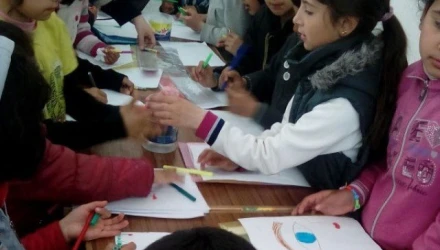 "Καλημέρα" λένε στα ελληνικά στον Νιχάντ Ιμπραχήμ, τον δάσκαλό τους, όπως τον αποκαλούν, αν και ο ίδιος λέει ότι δεν του αρέσει ιδιαίτερα η λέξη. Έπειτα πιάνουν στα χέρια τους μαρκαδόρους και τις μπογιές και αφήνουν το μυαλό τους να ταξιδέψει και τη φαντασία τους να ζωγραφίσει στο χαρτί τα όνειρά τους.