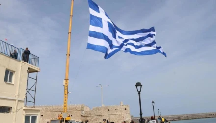 25η Μαρτίου: Σημαία 1,5 στρέμμα υψώθηκε στο λιμάνι του Ηρακλείου- Με γερανό η έπαρση