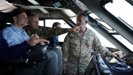 Από το Διοικητήριο του ΚΕΕΔ ο πρωθυπουργός παρακολούθησε στρατιωτική επίδειξη με την ανάπτυξη ελικοπτέρων, εξωλέμβιων Zodiac, jet ski και αλεξιπτωτιστών με σκοπό την κατάληψη ακτής και τη διάσωση ομήρου.