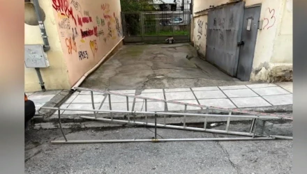 Όπως φαίνεται στα πλάνα ο άνθρωπος που έβαλε τη σκάλα στο οδόστρωμα, τοποθέτησε και μια βέργα, γύρω από την οποία ασφάλισε με λουκέτο τη σκάλα!