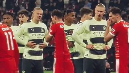Κατά τη διάρκεια του αγώνα, η ομάδα του κέρδισε ένα κόρνερ και έτσι αρκετοί παίκτες και των δύο ομάδων συγκεντρώθηκαν στην περιοχή. Εκείνος που κλήθηκε να μαρκάρει τον Χάαλαντ, λοιπόν, ήταν ο Λέον Γκορέτσκα, ο οποίος όμως δεν είχε υπολογίσει την... βαρυστομαχιά του αντιπάλου του. Η κάμερα αποτύπωσε τον Γερμανό να πιάνει τη μύτη του και δευτερόλεπτα αργότερα τον Νορβηγό να τρίβει το στομάχι του, με αποτέλεσμα οι οπαδοί να υποθέτουν πως ο δεύτερος... αερίστηκε.