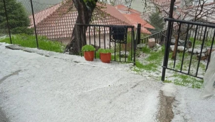 Στην Καρυά Ολύμπου έλαβε χώρα έντονη χαλαζόπτωση, με αποτέλεσμα να δημιουργηθεί λευκό τοπίο!