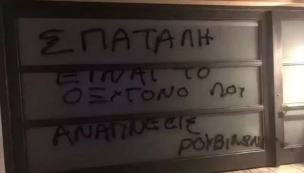 Παρέμβαση Ρουβίκωνα στο σπίτι του Πνευματικού - Έγραψαν σύνθημα στην είσοδο