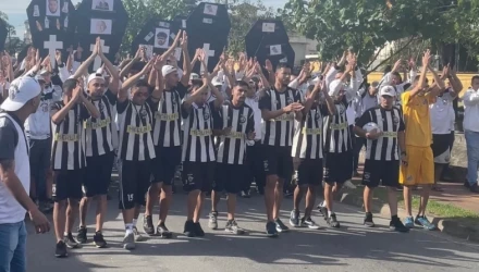 Ακραία συνθήματα κατά της διοίκησης, χάρτινα «φέρετρα» στοχοποιώντας τον πρόεδρο και έντονες αψιμαχίες με τη φρουρά του «Rei Pele» στιγμάτισαν το ηλιόλουστο μεσημέρι στη Βίλα Μπελμίρο, αλλά τον πιο περίεργο τρόπο διαμαρτυρίας έδωσαν μάλλον μια μικρότερη μερίδα των διαμαρτυρόμενων. Έντεκα τον αριθμό, συγκεκριμένα, οι οποίοι φόρεσαν φανέλες της Σάντος, παρατάχθηκαν σαν κανονική ενδεκάδα με τερματοφύλακα και προκάλεσαν την πρώτη ομάδα σε αγώνα!