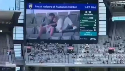 Στιγμές αμηχανίας έζησε ένα νεαρό ζευγάρι στην Αυστραλία όταν η γιγαντοοθόνη του γηπέδου στο οποίο βρισκόταν με αφορμή αγώνα κρίκετ τους έκανε τσακωτούς σε... στενή επαφή. Το περιστατικό συνέβη σε γήπεδο στη Μελβούρνη στην αναμέτρηση της Αυστραλίας με το Πακιστάν. Όταν οι δύο νέοι αντιλήφθηκαν ότι οι περιπτύξεις τους μεταδίδονταν από τη γιγαντοοθόνη, πετάχτηκαν από τις θέσεις του και προσπάθησαν να διαχειριστούν την ντροπή τους.