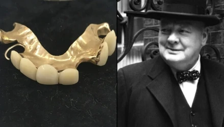 Ο Τσόρτσιλ, ο πρωθυπουργός της Βρετανίας κατά τη διάρκεια του Β' Παγκοσμίου Πολέμου, είχε πολλά σετ άνω οδοντοστοιχιών που κατασκευάστηκαν ειδικά για να καλύπτουν το τραύλισμά του και ήταν τοποθετημένα σε χρυσή μασέλα, σύμφωνα με την εταιρεία δημοπρασιών Cotswold Auction Company, η οποία διοργανώνει την πώληση στις 6 Φεβρουαρίου.
