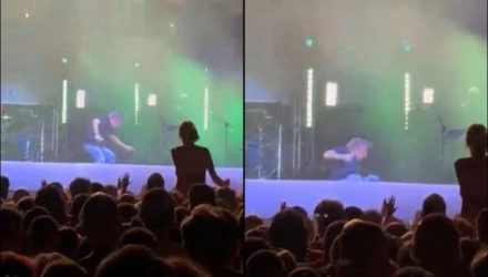Συγκεκριμένα, ο τραγουδιστής έχει μια άτυχη στιγμή πάνω στη σκηνή, καθώς όπως φαίνεται στο βίντεο, ενώ τραγουδάει και χορεύει ξαφνικά πέφτει.