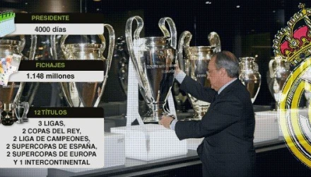 Σύμφωνα, λοιπόν, με την έρευνα που έγινε o Φλορεντίνο Πέρεθ έδωσε 1 δις ευρώ 148 εκατομμύρια ευρώ για να ενισχύσει τη Ρεάλ Μαδρίτης και να καταφέρει τελικά να κατακτήσει 2 Τσάμπιονς Λιγκ, 3 πρωταθλήματα, 2 κύπελλα, 2 Σούπερ Καπ Ισπανίας, 2 Σούπερ Καπ Ευρώπης, 1 Ιντερκοντινένταλ.