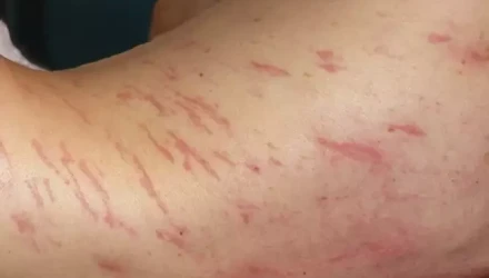 Τα «εξανθήματα» ήταν στην πραγματικότητα προνύμφες σκουληκιών! Τα κόκκινα σημάδια ήταν η αντίδραση του σώματος στις προνύμφες, που κινούνταν κάτω από το δέρμα κατά τη διάρκεια του πρώτου σταδίου στον κύκλο της ζωής τους. Ευτυχώς, οι γιατροί αντιμετώπισαν την μόλυνση με μια δόση του αντιπαρασιτικού φαρμάκου Ivermectin.