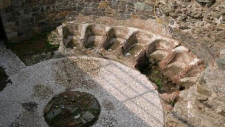 Ο χώρος του οίκου ανοχής που ανασκάφηκε το 1996 περιλαμβάνει λουτρά, κυκλικές αίθουσες εφίδρωσης (σάουνα), πισίνες και θερμαντικούς κλίβανους.