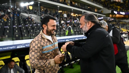Θερμό χαιρετισμό και ολιγόλεπτη συζήτηση είχαν λίγη ώρα πριν τη σέντρα του αγώνα ΑΕΚ-Άρης για το Κύπελλο Ελλάδας Μάριος Ηλιόπουλος και Θόδωρος Καρυπίδης.