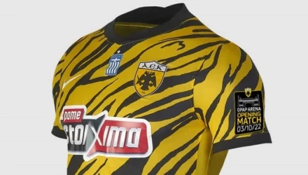 Για αυτή την ιστορική της μέρα, επέλεξε μία συλλεκτική φανέλα. Στο μανίκι της η εμφάνιση θα φέρει μία επιγραφή που θα έχει μέσα σ' ένα μικρό μαύρο πλαίσιο το γήπεδο με το σήμα της ΑΕΚ από πάνω του και από κάτω του θα γράφει «OPAP ARENA OPENING MATCH 03/10/22».