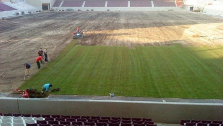 Η όψη αυτή τη στιγμή του χλοοτάπητα έχει ελαφρώς κίτρινο-καφέ χρώμα, όψη φυσιολογική για τις εργασίες που έχουν προηγηθεί (κυρίως λόγω της αμμοδιανομής), η οποία θα βελτιωθεί την επόμενη εβδομάδα με την επίδραση των παρεμβάσεων".