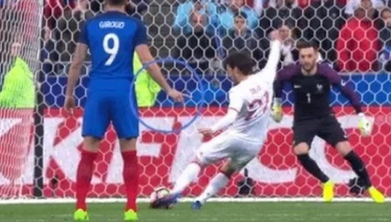 Τα ήθελε και τα... έπαθε ο Ούγκο Γιορίς. Ο Γάλλος τερματοφύλακας δεν άκουσε τις συμβουλές του συμπαίκτη του στην εθνική Γαλλίας, Ολιβιέ Ζιρού, με αποτέλεσμα να μην καταφέρει να αποκρούσει το πέναλτι.
