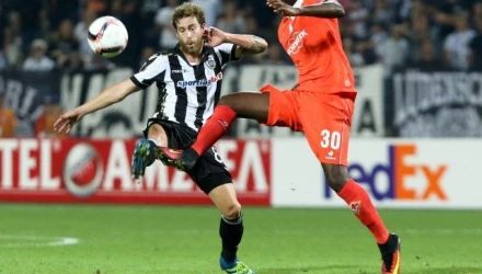 Ο Σέρβος τεχνικός επέλεξε τον Ζέλικο Μπρκιτς κάτω από τα δοκάρια, στην δεύτερη επίσημη συμμετοχή του με τον Δικέφαλο και κάνοντας ταυτόχρονα ντεμπούτο στο Europa League με την ασπρόμαυρη φανέλα.