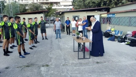 Παρουσία των διοικούντων, προπονητών, παικτών και στελεχών του συλλόγου, ο πατήρ Σάββας ευλόγησε την ομάδα για μια χρονιά με υγεία και επιτυχίες στο νέο πρωτάθλημα της Α1 ΕΠΣΜ.