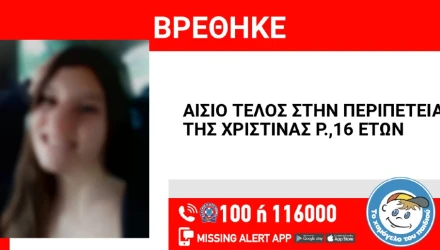 Αίσιο τέλος είχε περιπέτεια της 16χρονης που εξαφανίστηκε από δομή παιδικής προστασίας στη Θεσσαλονίκη.
