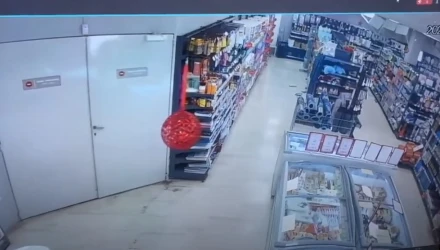 Την ίδια στιγμή, έντρομη και πανικόβλητη υπάλληλος του μαγαζιού απεικονίζεται να βγαίνει τρέχοντας από το εσωτερικό του καταστήματος.