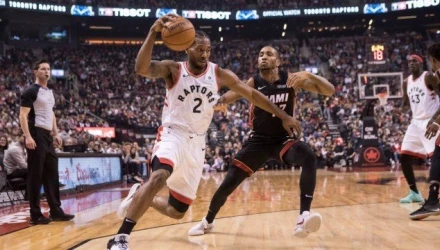 Ο ηγέτης των Χιτ ήρθε από τον πάγκο και πέτυχε 35 πόντους, αλλά ο Καουάι Λέοναρντ (29 πόντοι, 10 ριμπάουντ) και ο Πασκάλ Σιακάμ (21 πόντοι, 6 ριμπάουντ) έγειραν την πλάστιγγα προς τους «δεινόσααυρους».