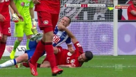 Τον Λουίς Σουάρες μιμήθηκε ο Τζούλιαν Σίμπερ στην αναμέτρηση της Χέρτα Βερολίνου κόντρα στην Μπάγερ Λεβερκούζεν.