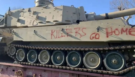 Φωνάζοντας το σύνθημα «Αλεξανδρούπολη λιμάνι των λαών και όχι ορμητήριο των ιμπεριαλιστών», αλλά και γράφοντας συνθήματα με κόκκινη μπογιά «killers go home» πάνω στα άρματα ανάγκασαν το τρένο να οπισθοχωρήσει.