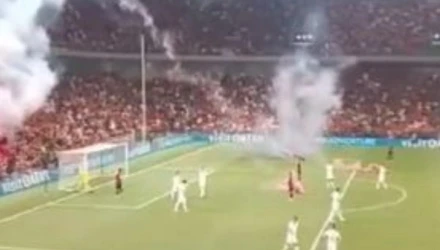 Προτού καν προλάβει να συμπληρωθεί το πρώτο λεπτό της αναμέτρησης, οπαδοί των γηπεδούχων άναψαν καπνογόνα στις εξέδρες και τα πέταξαν στον αγωνιστικό χώρο με αποτέλεσμα την προσωρινή διακοπή!