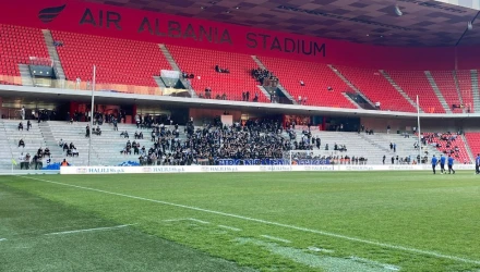 Την απόφαση να ξηλωθούν τα καθίσματα στα δύο πέταλα ώστε να μην μπορούν οι οπαδοί να τα πετάξουν στον αγωνιστικό χώρο πήρε η ομοσπονδία της Αλβανίας.