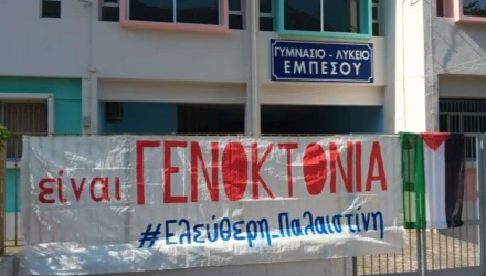 Το συγκεκριμένο πανό τοποθέτησαν νεαροί, μαζί με τη σημαία της Παλαιστίνης, επιθυμώντας να στείλουν το δικό τους μήνυμα αλληλεγγύης για τη σφαγή του παλαιστινιακού λαού στη Γάζα από τον στρατό του Ισραήλ που ήδη έχει στοιχίσει της ζωή σε πάνω από 36.000 αμάχους.