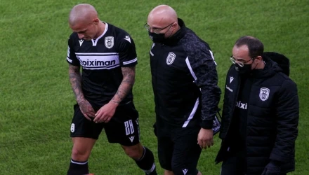 Είκοσι λεπτά αργότερα, έπεσε στο έδαφος δείχνοντας ότι αντιμετωπίζει πρόβλημα στον προσαγωγό με το ιατρικό τιμ του ΠΑΟΚ να αντιδράει άμεσα. Τη θέση του πήρε ο Μουργκ.