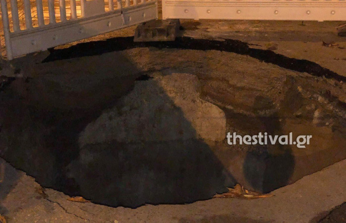 Σύμφωνα με πληροφορίες πριν από μέρες, επιχειρηματίες της περιοχής αντιλήφθηκαν ότι ο δρόμος άρχισε να υποχωρεί και ειδοποίησαν συνεργεία του δήμου. Όταν άνοιξαν να δουν τι συμβαίνει διαπίστωσαν ότι ο δρόμος είχε διαβρωθεί από σωλήνα της ΕΥΑΘ, ο οποίος έχει σπάσει.
