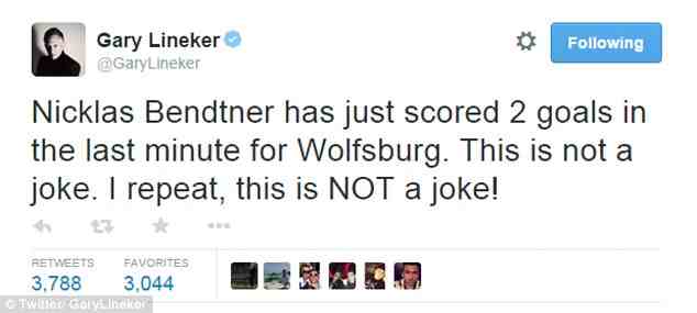 Έκπληκτος έμεινε ο πρώην επιθετικός και νυν παρουσιαστής του «BBC» με τα δύο γκολ του Δανού σε διάστημα δύο λεπτών γράφοντας στον προσωπικό του λογαριασμό στο «Twitter» τη φράση: «Ο Νίκλας Μπέντνερ μόλις σημείωσε δύο γκολ στα τελευταία λεπτά για τη Βόλφσμπουργκ. Δεν είναι αστείο. Επαναλαμβάνω, ΔΕΝ είναι αστείο»!
