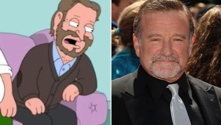 Πρόκειται για το επεισόδιο Fatman and Robin όπου ο Peter Griffin ότι άγγιζε το μετέτρεπε σε... Ρόμπιν Γουίλιαμς και απογοητευμένος από όσα του συνέβαιναν προσπαθεί να αυτοκτονήσει αλλά αποτυγχάνει. Τη σειρά κινουμένων σχεδίων παρακολούθησαν χιλιάδες θεωατές και έγινε χαμός στο διαδίκτυο μόλις έγινε γνωστός ο θάνατος του μεγάλου Αμερικάνου ηθοποιού.