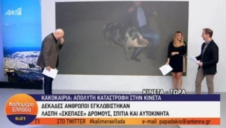 Όταν, λοιπόν, συνδέθηκαν με την περιοχή, αντίκρισαν τον ρεπόρτερ Λάζο Μαντικό να τρέχει, καθώς τον κυνηγούσε ένα... γουρούνι. Ο Γιώργος Παπαδάκης και οι συνεργάτες του δεν μπορούσαν να συγκρατήσουν τα γέλια τους, ενώ την ίδια ώρα ο ρεπόρτερ προσπαθούσε να πει το ρεπορτάζ με το θηλυκό γουρούνι να μην τον αφήνει ούτε δευτερόλεπτο ήσυχο.