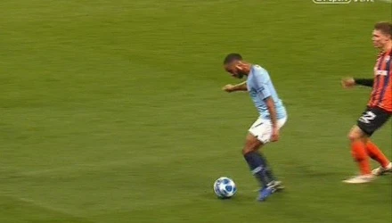 Στο 24ο λεπτό του παιχνιδιού Μάντσεστερ Σίτι – Σαχτάρ ο Ραχίμ Στέρλινγκ μπέρδεψε τα πόδια του κι έπεσε εντός περιοχής, με τον διαιτητή να δίνει το πιο... άκυρο πέναλτι στα χρονικά της διοργάνωσης.