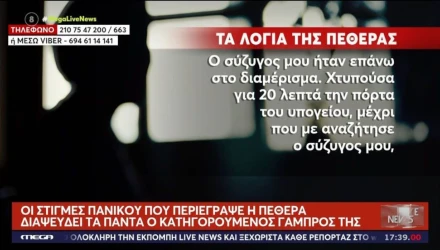 «Ο πελάτης μου λέει πως υπήρχε έξοδος διαφυγής. Ο πελάτης δεν ήξερε πως υπήρχε κάποιος στο υπόγειο», είπε ο Αναστάσιος Τσόης, δικηγόρος του κατηγορούμενου. Την 55χρονη απεγκλώβισε ο σύζυγός της. Επειδή, όπως ανέφερε, ανησύχησε, όταν τα λεπτά άρχισαν να περνούν χωρίς εκείνη να έχει επιστρέψει στο σπίτι.