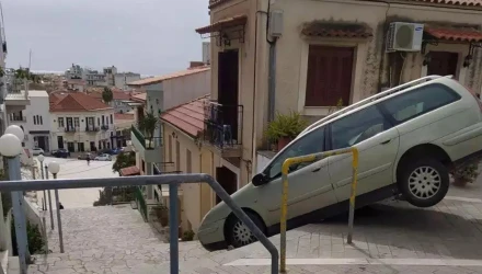 Καλαμάτα: Έστριψε το αυτοκίνητο και... βρέθηκε να κρέμεται από τα σκαλιά!