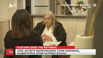 Η δύναμη της θέλησης μιας γυναίκας να αλλάξει ολοκληρωτικά τη ζωή της στάθηκε η αιτία από άστεγη να φτάσει καθηγήτρια στην Ιατρική Σχολή. Για 18 ολόκληρα χρόνια η Φωτεινή υπήρξε εθισμένη στα ναρκωτικά, η μοίρα όμως της επεφύλασσε εκπλήξεις, αφού σε ηλικία 37 ετών αποφάσισε να αλλάξει ολοκληρωτικά τη ζωή της και από άστεγη, εξαθλιωμένη και αβοήθητη να γίνει… καθηγήτρια στην Ιατρική Σχολή. Η 58χρονη, σήμερα, Φωτεινή τα έχει αφήσει όλα πίσω της και διδάσκει στο Πανεπιστήμιο. Μιλώντας στο T-Live του Alpha, περιγράφει τις δυσκολίες που πέρασε όντας άστεγη, αλλά και στη φυλακή και στέλνει το δικό της μήνυμα για τη δύναμη της ανθρώπινης θέλησης.