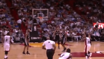 Ο παίκτης των Χιτ σούταρε πίσω από το κέντρο του γηπέδου ευστοχώντας με τη λήξη του χρόνου, πετυχαίνοντας ένα εντυπωσιακό τρίποντο.