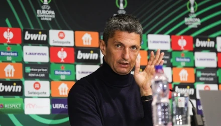 Αρχικά ανέφερε για το εκτός έδρας γκολ που δεν ισχύει και για τον τρόπο προσέγγισης της αναμέτρησης: «Οι όροι είναι όροι και εμείς πρέπει να προσαρμοστούμε στους όρους του παιχνιδιού, δεν μπορών να πω ότι μου αρέσει κάποιος κανονισμός περισσότερο. Η πρόκριση είναι κάτι που θα κριθεί στο παιχνίδι της Τούμπας μετά το παιχνίδι στη Δανία. Ξέρουμε ότι θα έρθουμε αντίπαλοι με μία καλή ομάδα, από ένα πολύ ποδοσφαιρικό πρωτάθλημα. Έχουμε μία φιλοσοφία και ένα στυλ παιχνιδιού με το οποίο θα αντιμετωπίσουμε την Μίντιλαντ αύριο».