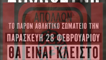 Την Παρασκευή, 28 Φεβρουαρίου 2025, ημέρα συλλογικού πένθους, ως ελάχιστο φόρο τιμής στη μνήμη των θυμάτων και στις οικογένειές τους για την εθνική τραγωδία των Τεμπών, τα γραφεία του Απόλλωνα Καλαμαριάς θα παραμείνουν κλειστά και δεν θα πραγματοποιηθούν οι προπονήσεις του Συλλόγου σε όλες τις εγκαταστάσεις του.