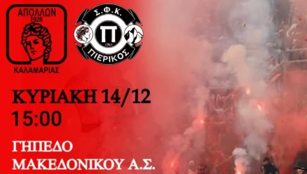 Απόλλων Καλαμαριάς-Πιερικός στο γήπεδο Μακεδονικού-Ολο το πρόγραμμα