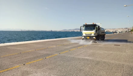 Έτσι, σήμερα βυτιοφόρο του Δήμου Θεσσαλονίκης προμηθευμένο με το κατάλληλο απορρυπαντικό υγρό καθάριζε και απολύμανε την παραλία σε όλο της το μήκος.