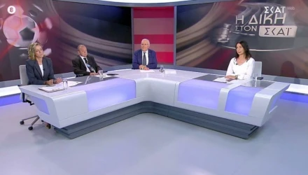 Στο studio ο υφυπουργός Δικαιοσύνης Ιωάννης Μπούγας, ο στοιχηματικός αναλυτής Νίκος Παναγόπουλος και οι δημοσιογράφοι Γιώργος Μπούζος και Μαίρη Μπενέα. Παρεμβαίνει από την Οξφόρδη ο δικηγόρος και καθηγητής αθλητικού δικαίου Γρηγόρης Ιωαννίδης.