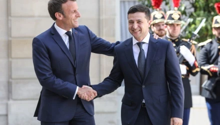 Με δύο tweets γραμμένα στα ουκρανικά, ο Μακρόν εξέφρασε τη στήριξη της Γαλλίας στον ουκρανικό λαό, ενώ χαρακτήρισε τον Ουκρανό πρόεδρο ως σύμβολιο της τιμής, του θάρρους και της ελευθερίας.