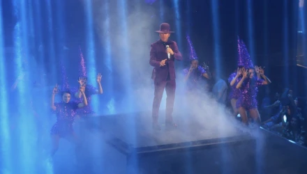 Ο Μαζωνάκης εμφανίστηκε στη σκηνή με ένα ιδιαίτερο σύνολο, πιστός στο εκκεντρικό αλλά σκηνικά μελετημένο στυλ του.