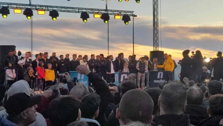 Οι ποδοσφαιριστές του Άκη Μάντζιου και ο Έλληνας προπονητής ανέβηκαν στη σκηνή που έχει στηθεί στο μέρος της πλατείας κοντά στη θάλασσα και αποθεώθηκαν από τους φιλάθλους των «κιτρινόμαυρων» που έχουν κατακλύσει την κεντρική πλατεία της Θεσσαλονίκης.