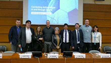 Ανώτατοι αξιωματούχοι και εκπρόσωποι κορυφαίων Ευρωπαϊκών Ποδοσφαιρικών Οργανισμών ενώθηκαν την Τετάρτη (29/03), με τη δύναμη του αθλητισμού για την αντιμετώπιση του αντισημιτισμού, στο φόρουμ του Παγκόσμιου Εβραϊκού Συνεδρίου, που διαδραματίστηκε στο πλαίσιο συνόδου του Συμβουλίου των Ανθρωπίνων Δικαιωμάτων του Ο.Η.Ε. στη Γενεύη και συνέπεσε με την 75η επέτειο της οικουμενικής διακήρυξης των Ανθρωπίνων Δικαιωμάτων.