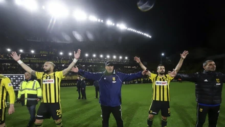 Οι παίκτες του Χερμάν Μπούργος πανηγύρισαν μαζί με τον κόσμο τη νίκη επί του συμπολίτη, ενώ στα μάτριξ του γηπέδου εμφανίστηκε ο Άλκης με το μήνυμα αθάνατος.