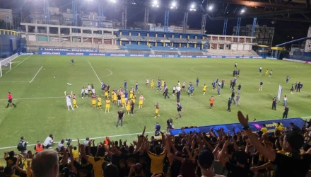 Σε έντονους πανηγυρισμούς ξέσπασαν οι παίκτες και ο κόσμος του Άρη μετά το διπλό στο Αγρίνιο επί της Κηφισιάς για την τέταρτη αγωνιστική του πρωταθλήματος της Super League.