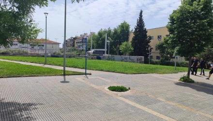 Ο χώρος που τοποθετήθηκε η γιγαντοοθόνη βρίσκεται μεταξύ της εκκλησίας της Αγίας Βαρβάρας και του ΙΚΑ, πολύ κοντά στο γήπεδο μπάσκετ.